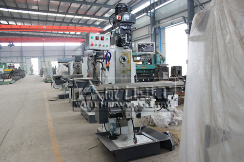 7、主軸套筒可手動微進給,並設有限位裝置,銑頭可順、逆時針回轉調整45°;